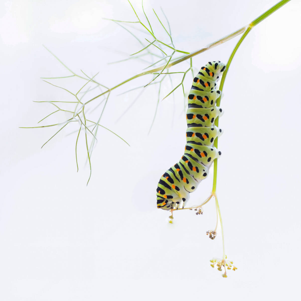 Species shown: Swallowtail butterfly (caterpillar) (Papilio machaon)